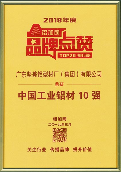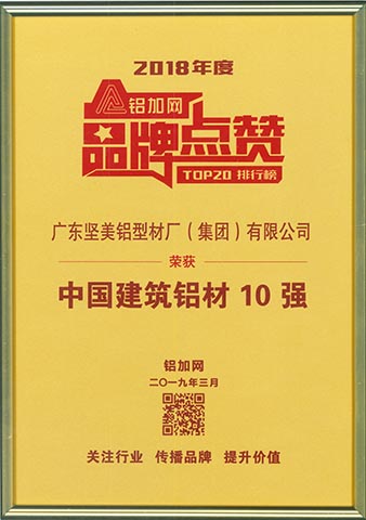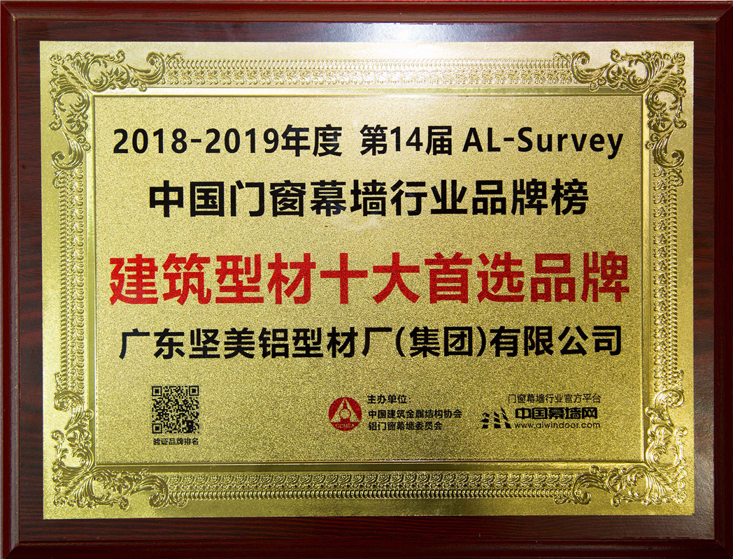 2018-2019年度中國門窗幕墻行業品牌榜建筑型材十大首選品牌
