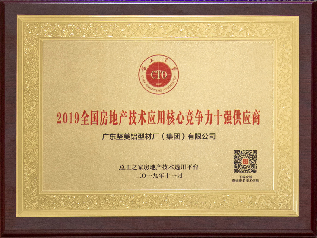 2019全國房地產技術應用核心競爭力十強供應商(廣東堅美)